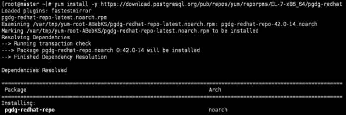 [root@master ~]# yum install -y https://download.postgresql.org/pub/repos/yum/reporpms/EL-7-x86_64/pgdg-redhat-