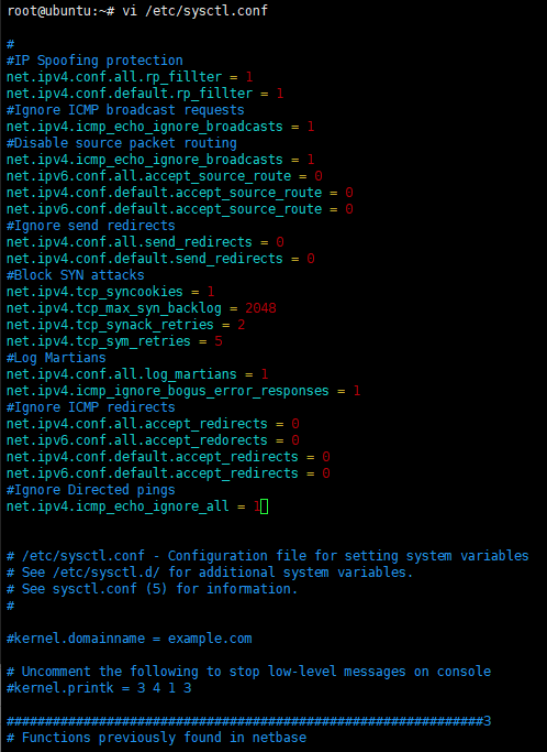 sysctl -p 명령어로 방금 설정한 파일을 재로드 하면 Ubuntu20.04 기본 보안 설정이 완료됩니다.